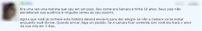 E você acredita em uma história dessas? Já viu ou foi enganado por algum recado malicioso ou spam? Conte para a gente e ajude a prevenir mais usuários das lendas do Orkut! E lembre-se, tome muito cuidado antes de clicar em qualquer coisa! Procure verificar a barra de status do seu navegador antes!